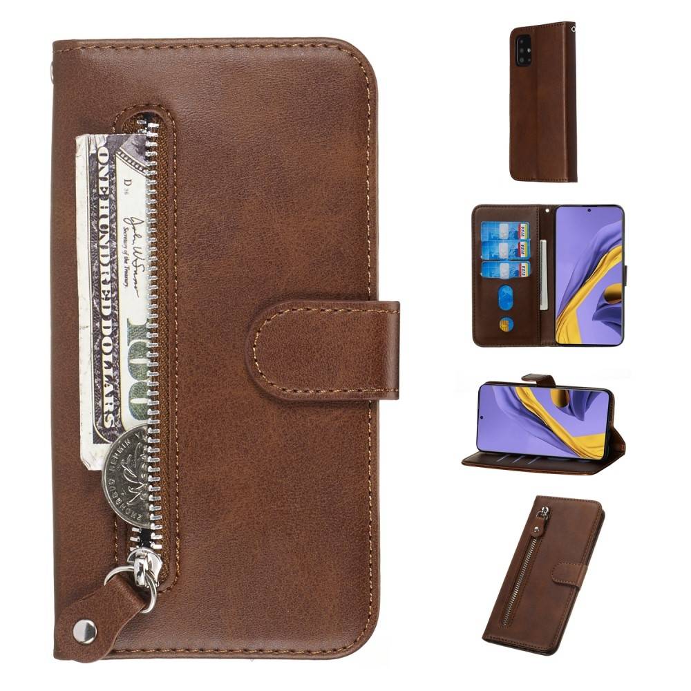 Samsung Galaxy A51 - Læder cover / pung m/udvendig lomme - Brun