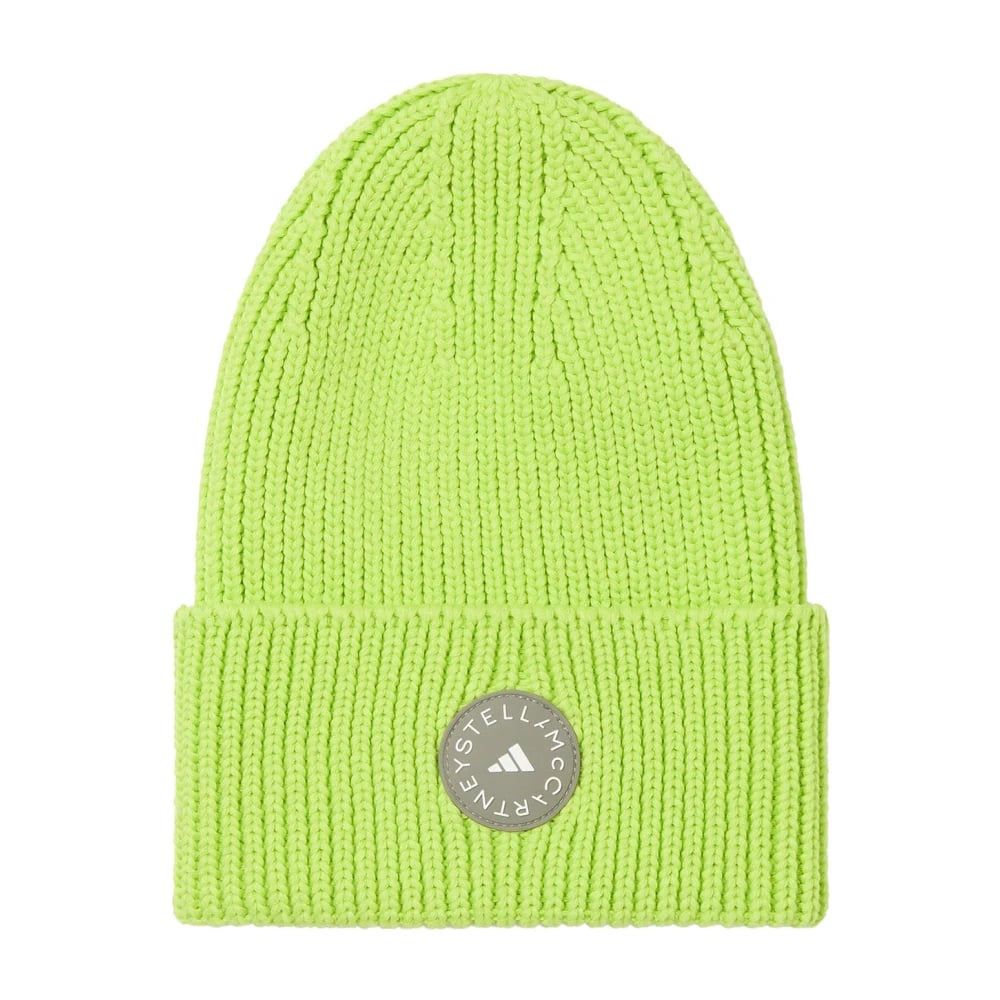Adidas by Stella McCartney, Accessories , Dame, Grøn, ONE SIZE, Bomuld, Fluorescerende Gul Bomuld Beanie Hat