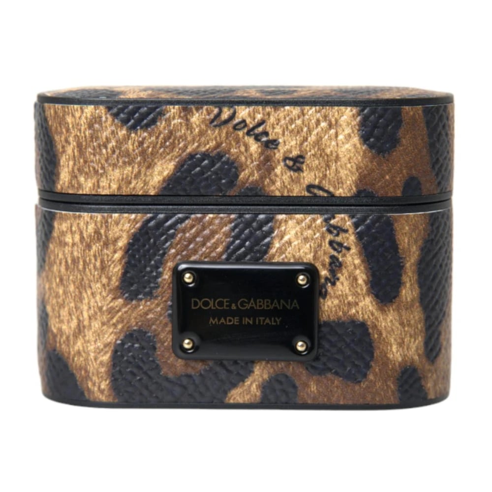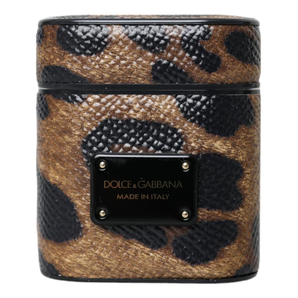 Dolce & Gabbana, Accessories , unisex, Brun, ONE SIZE, Læder, Leopard Kalv Læder Airpods Etui