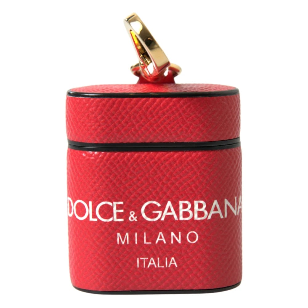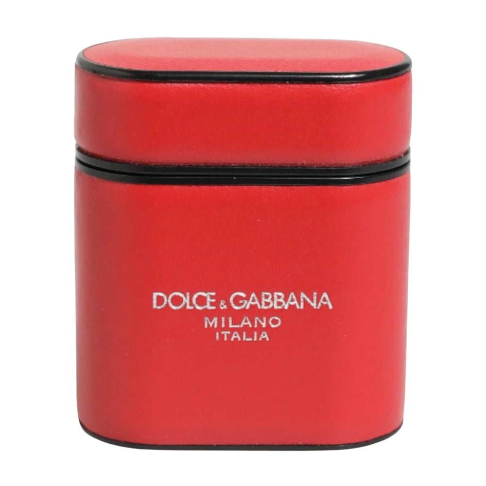 Dolce & Gabbana, Accessories , unisex, Rød, ONE SIZE, Læder, Rød Hvid Læder AirPods Etui