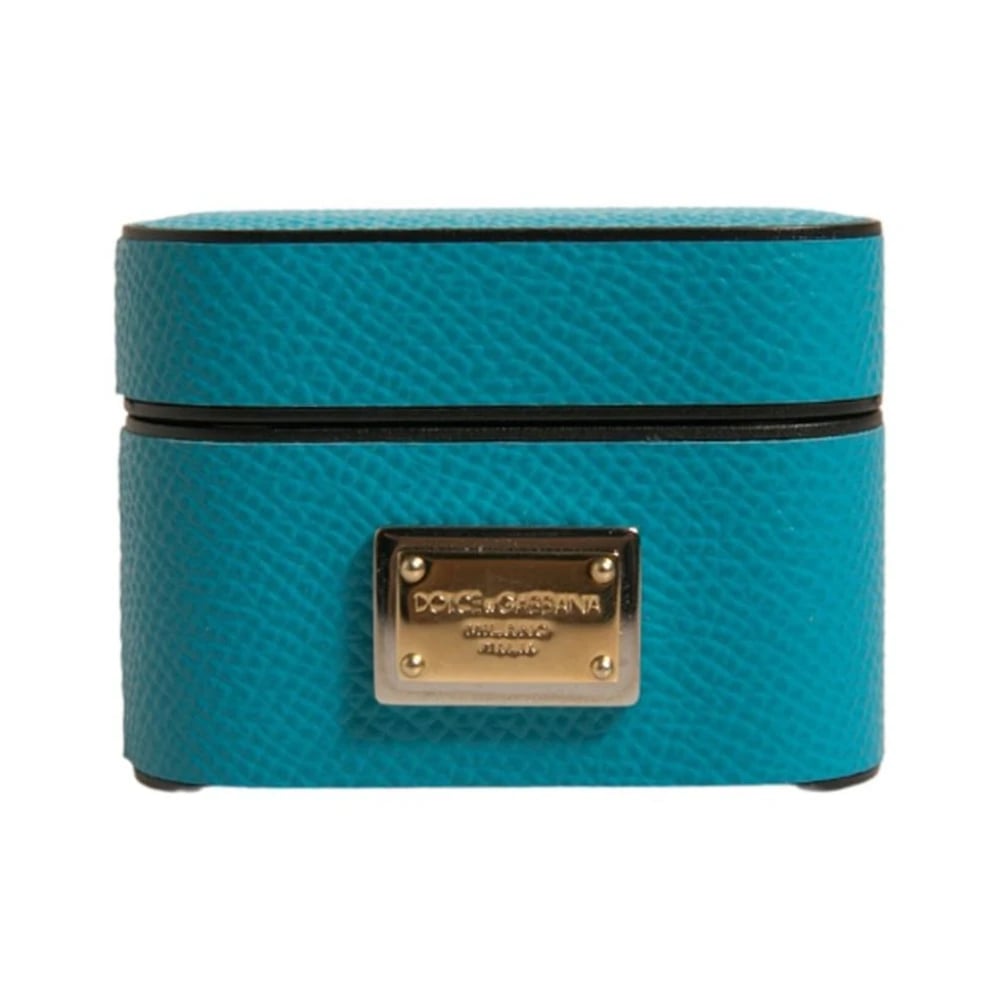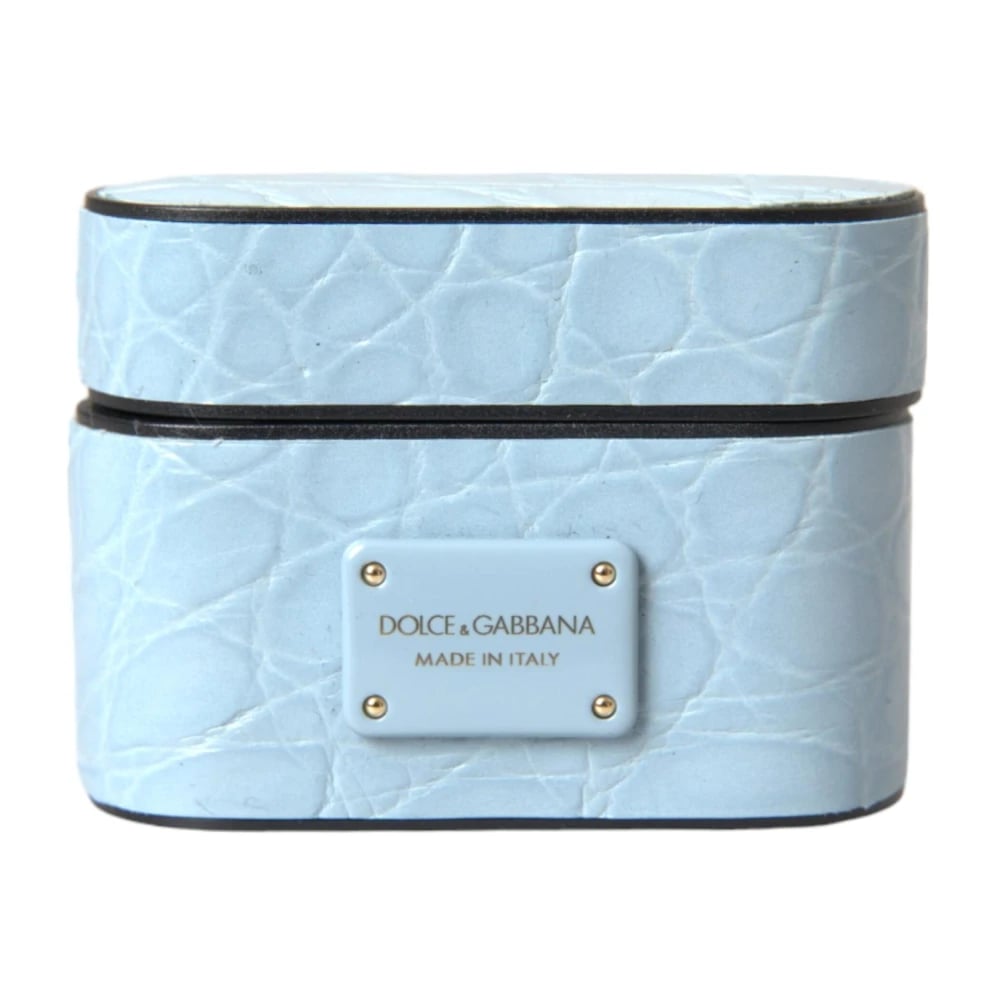 Dolce & Gabbana, Accessories , Dame, Blå, ONE SIZE, Læder, Metal Logo Airpods Etui Lyseblå