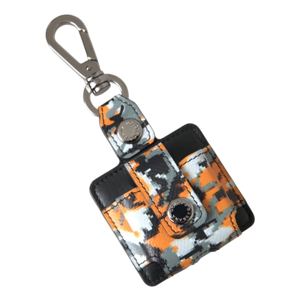 Dolce & Gabbana, Accessories , unisex, Flerfarvet, ONE SIZE, Læder, Multifarvet Camouflage Læder Airpods Etui