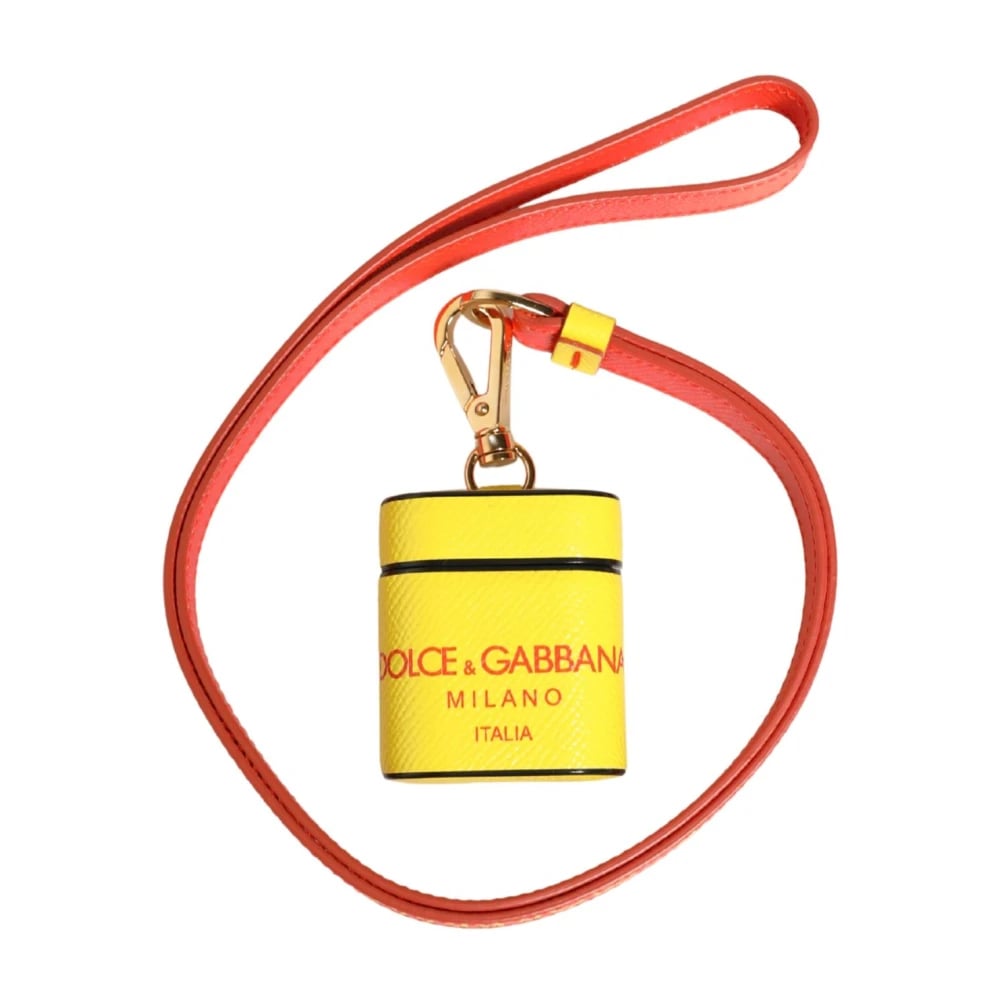 Dolce & Gabbana, Accessories , Dame, Gul, ONE SIZE, Læder, Kalvelæder Logo Flip Holder Rem AirPods Etui