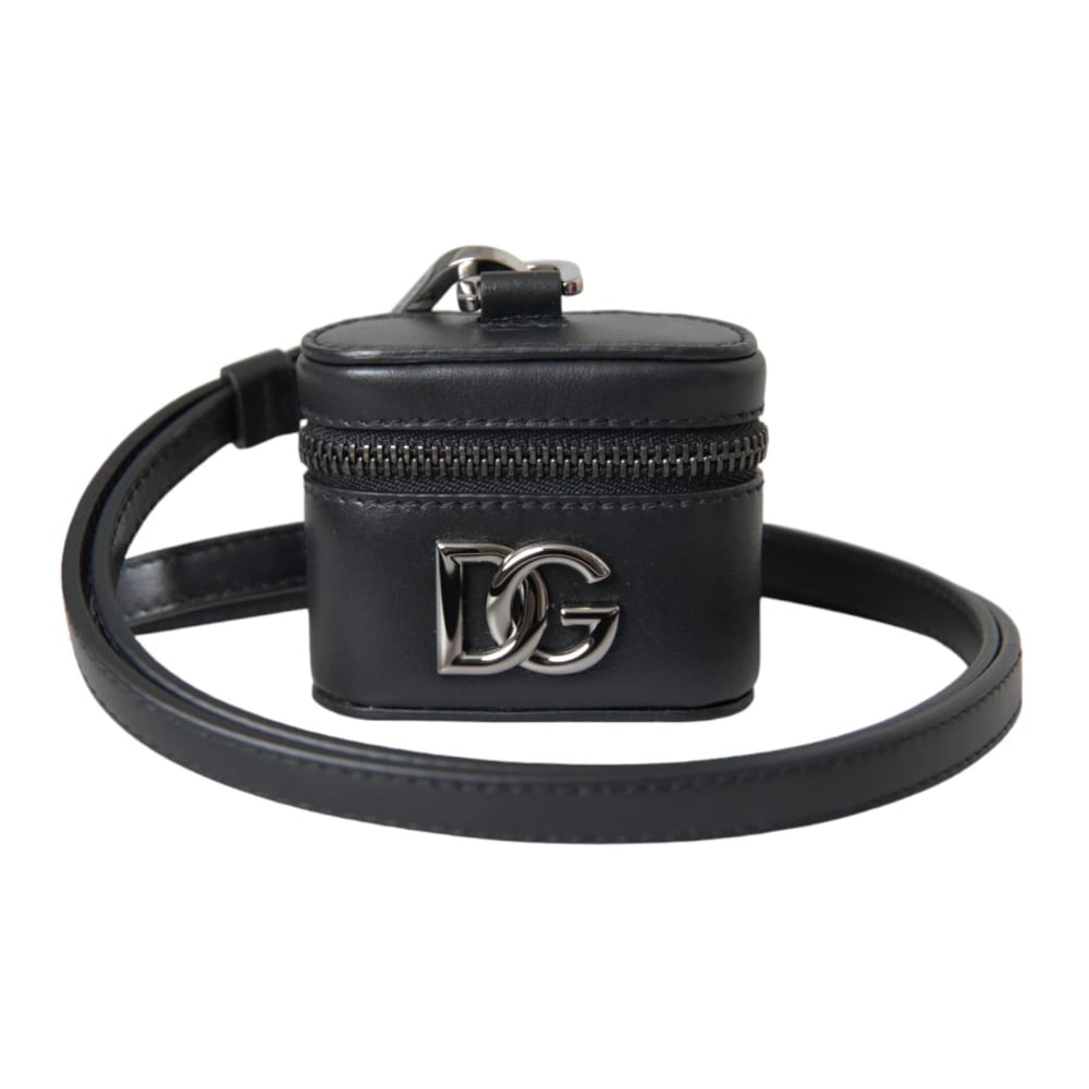 Dolce & Gabbana, Accessories , unisex, Sort, ONE SIZE, Læder, Sort DG Logo Læder Airpods Etui