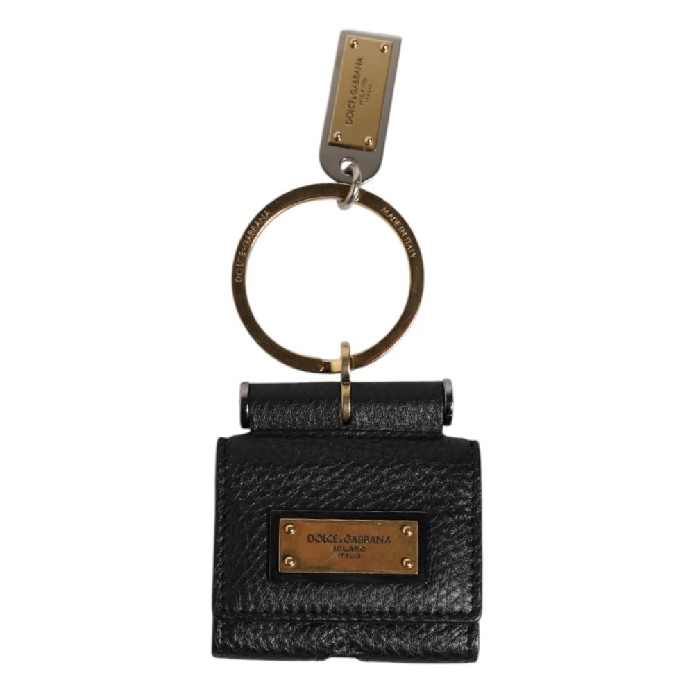 Dolce & Gabbana, Accessories , Herre, Sort, ONE SIZE, Læder, Læder Logo Print Flip Holder Airpods Etui