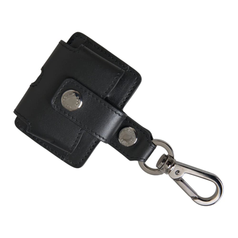 Dolce & Gabbana, Accessories , Dame, Sort, ONE SIZE, Læder, Sort læder Airpods-etui med sølvspænde