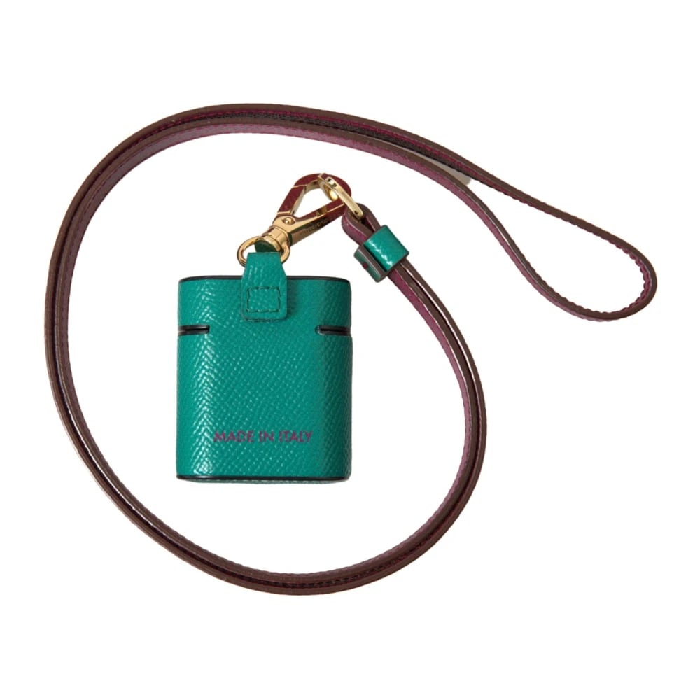 Dolce & Gabbana, Accessories , Dame, Grøn, ONE SIZE, Læder, Læder Airpods-etui med rem