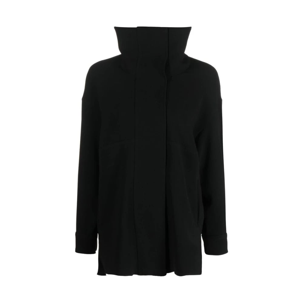 Alberto Biani, Jakker , Dame, Sort, 2XS, Uld, Sort højhalset eksponeret-søm top