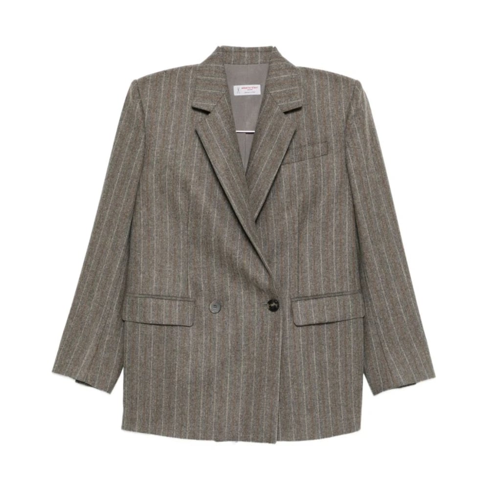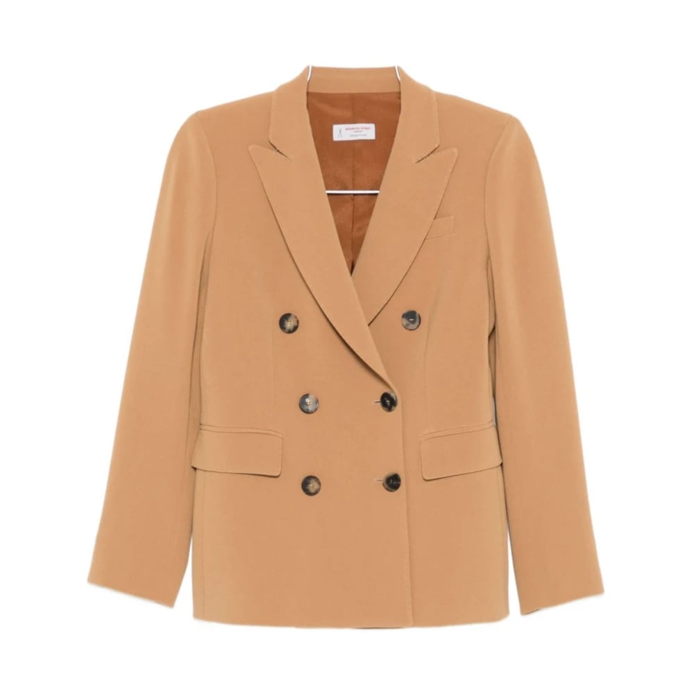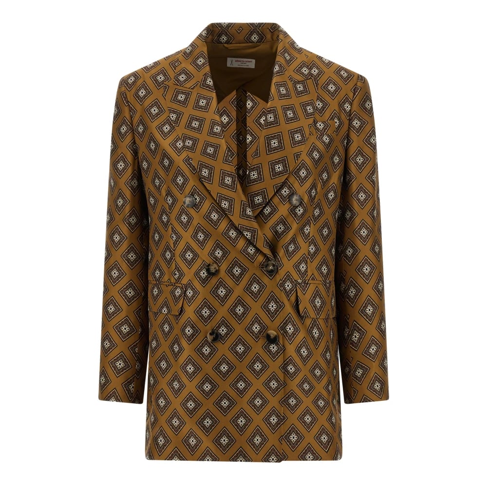 Alberto Biani, Jakker , Dame, Brun, S, Uld, Double-Breasted Silk Tie Blazer