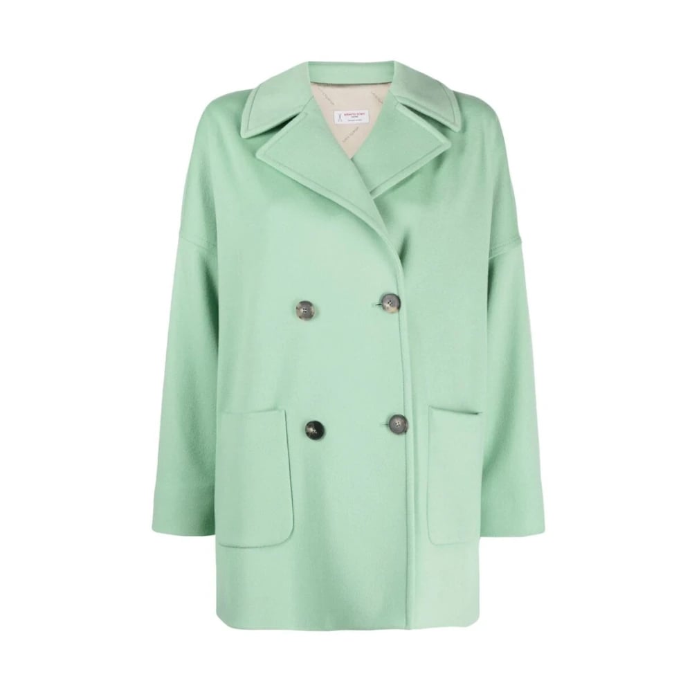Alberto Biani, Frakker , Dame, Grøn, XS, Uld, Mintgrøn Dobbeltbrystet Uldfrakke