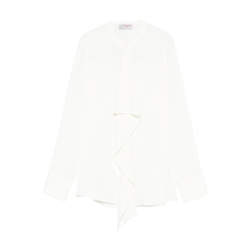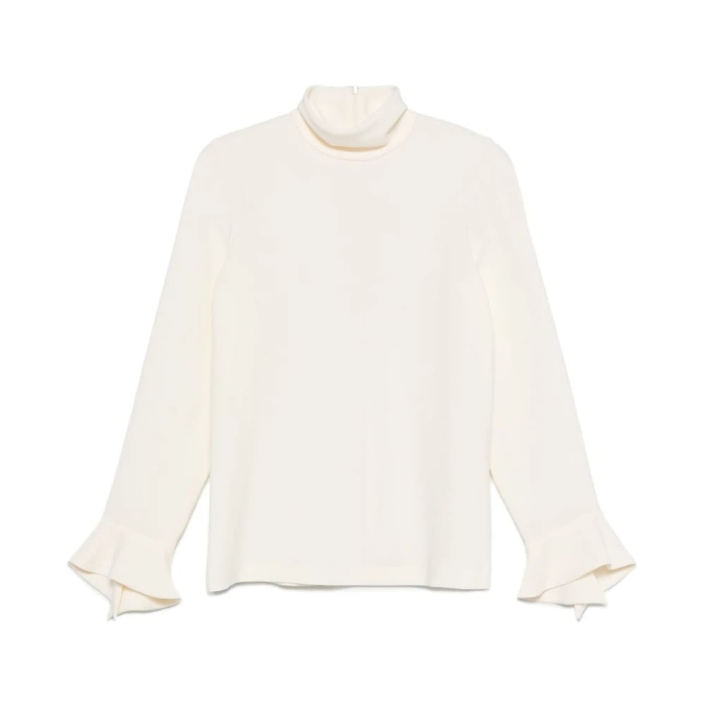 Alberto Biani, Bluser og skjorter , Dame, Beige, L, Ivory Bell Sleeves High Neck Skjorte
