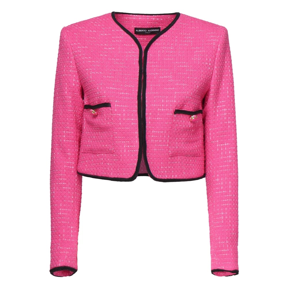 Alberto Audenino, Jakker , Dame, Lyserød, M, Tyl, Tailor Style Pink Jakke med Kontrasterende Profiler