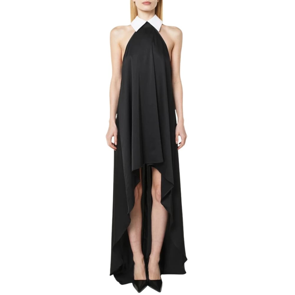 Alberto Audenino, Kjoler , Dame, Sort, M, Polyester, Sort asymmetrisk kjole med hvid krave