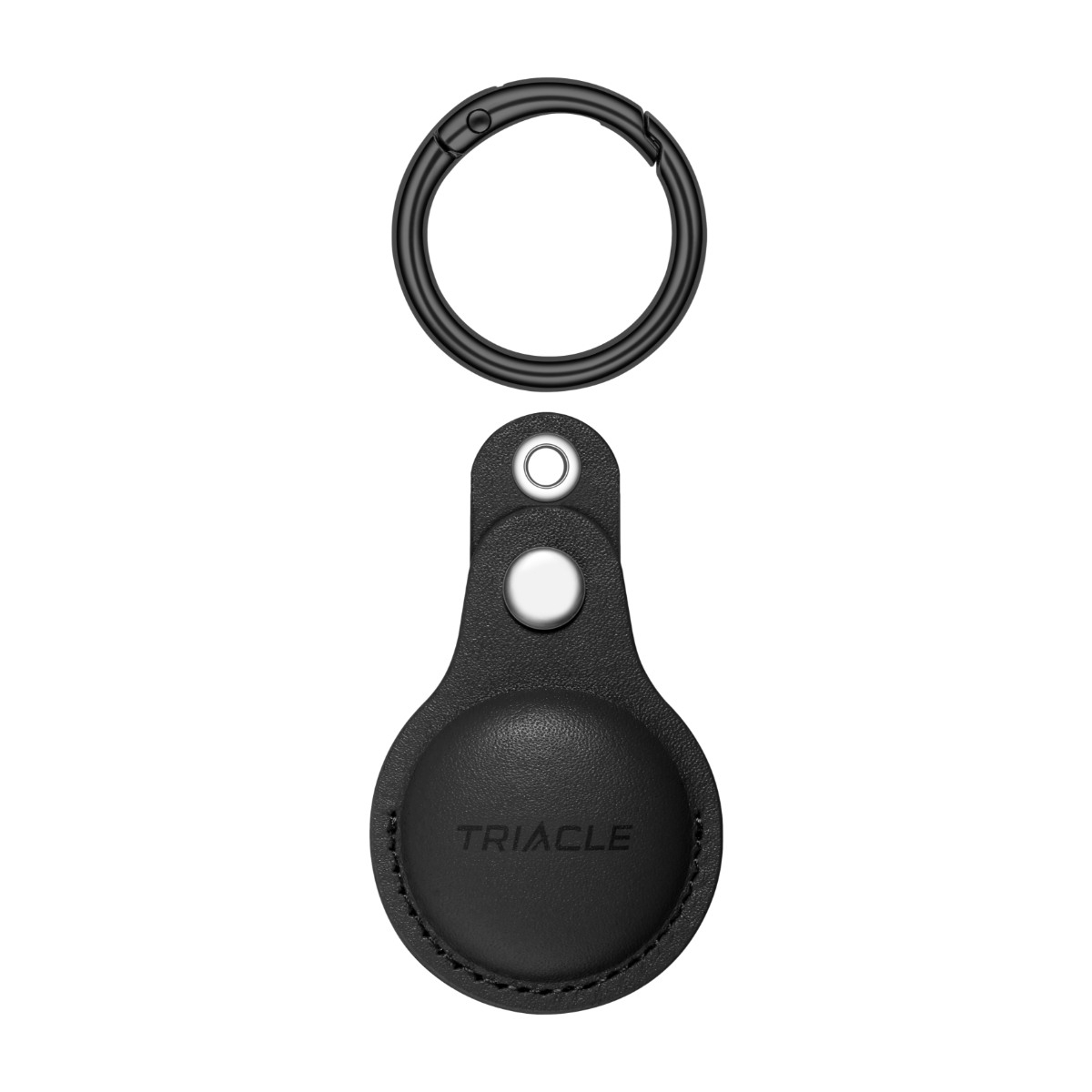 Triacle nøglering i ægte læder til Apple AirTag/Triacle X-mark Two/Triacle X-mark Three, sort