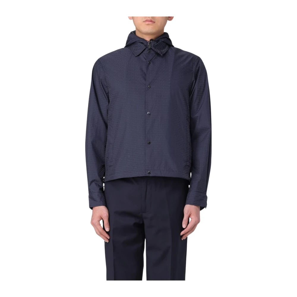 Emporio Armani, Jakker , Herre, Blå, M, Hooded ButtonFront Jacket