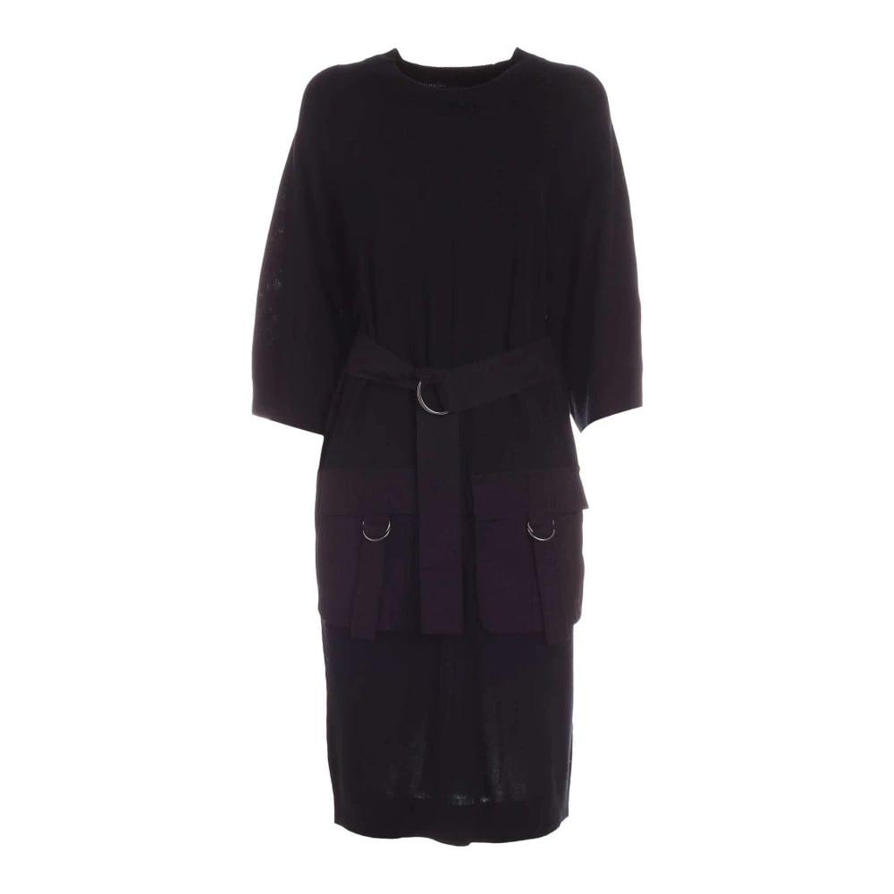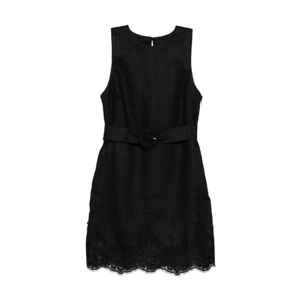 Twinset, Kjoler , Dame, Sort, L, Kjole med blondekant og bælte