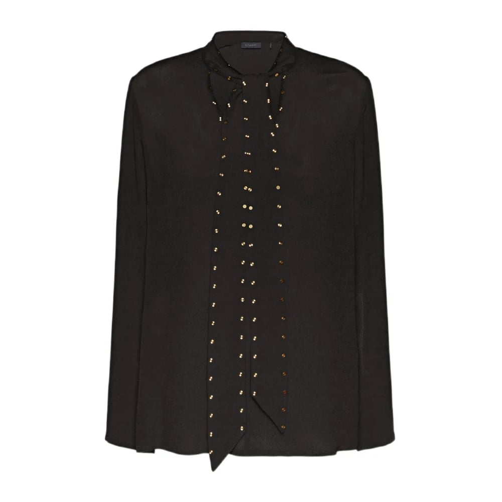Elena Mirò, Bluser og skjorter , Dame, Sort, M, Tyl, Bluse med bælte og flade nitter