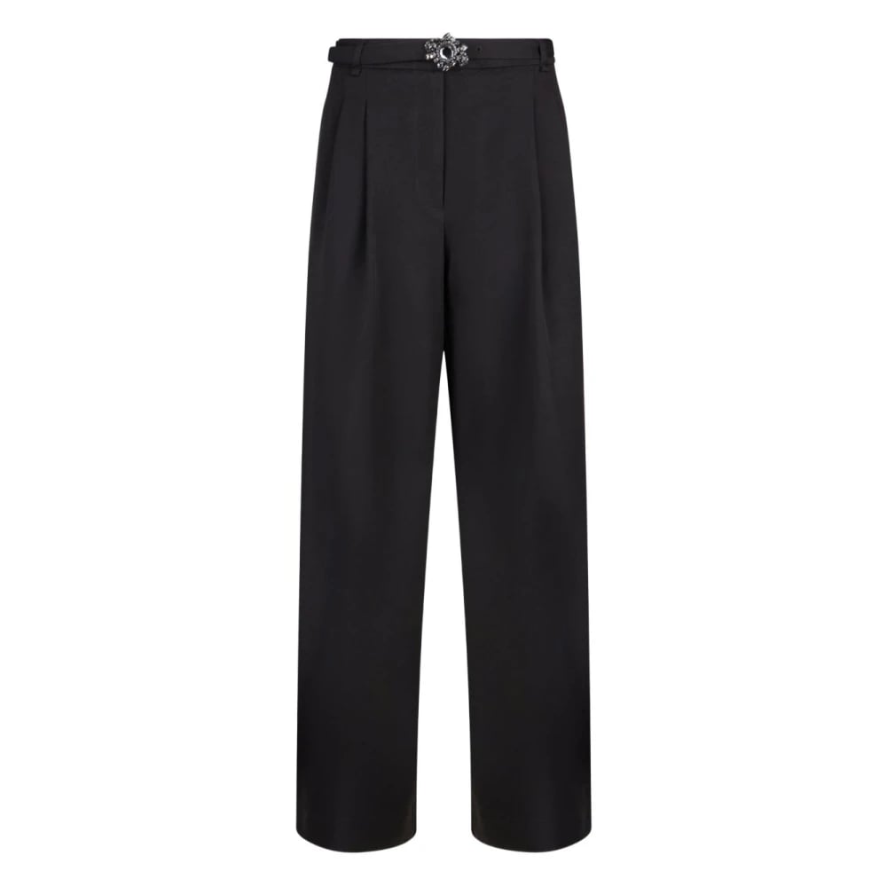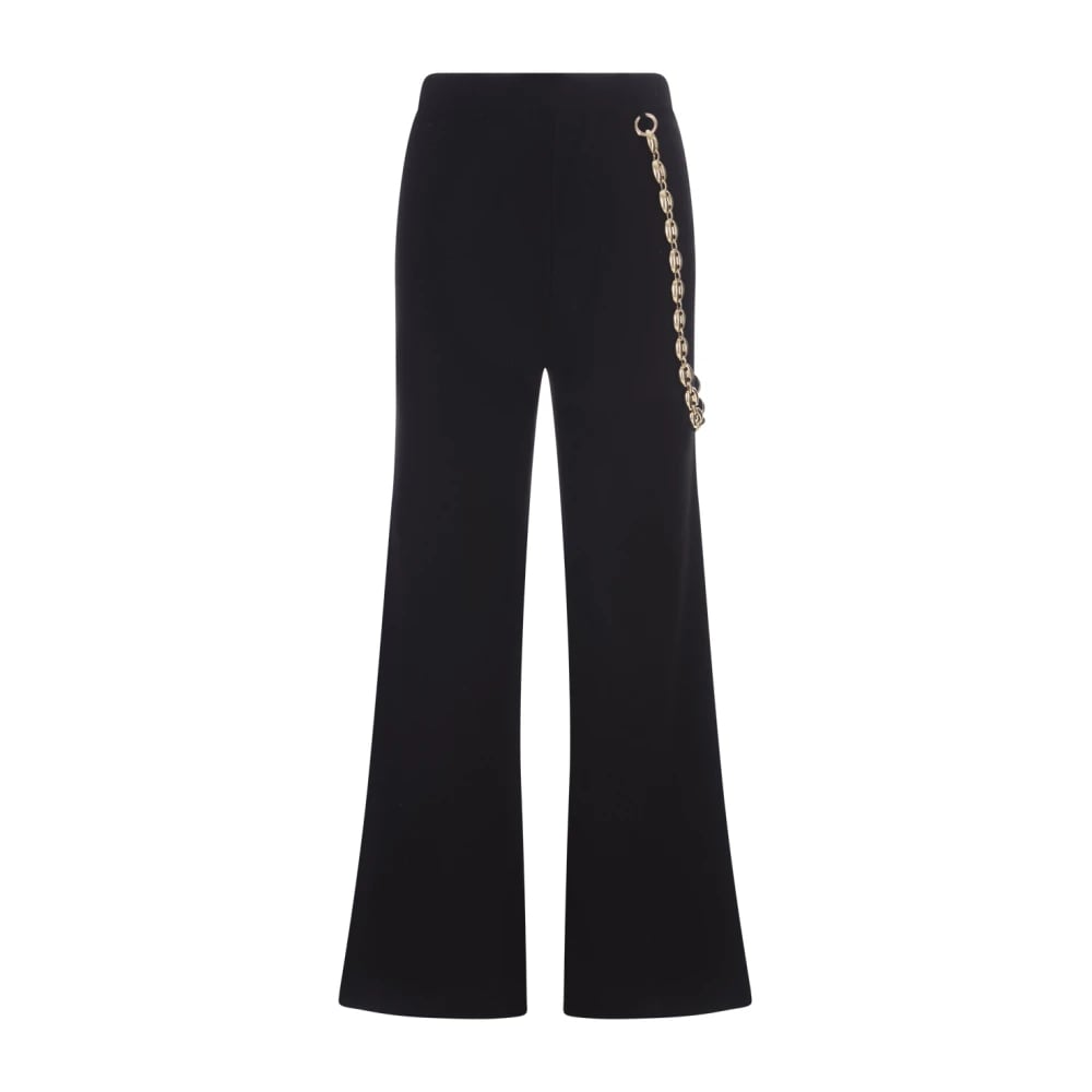 Rabanne, Bukser , Dame, Sort, S, Uld, Sorte Bukser med Bredt Ben og Guldfinish Kæde Bælte
