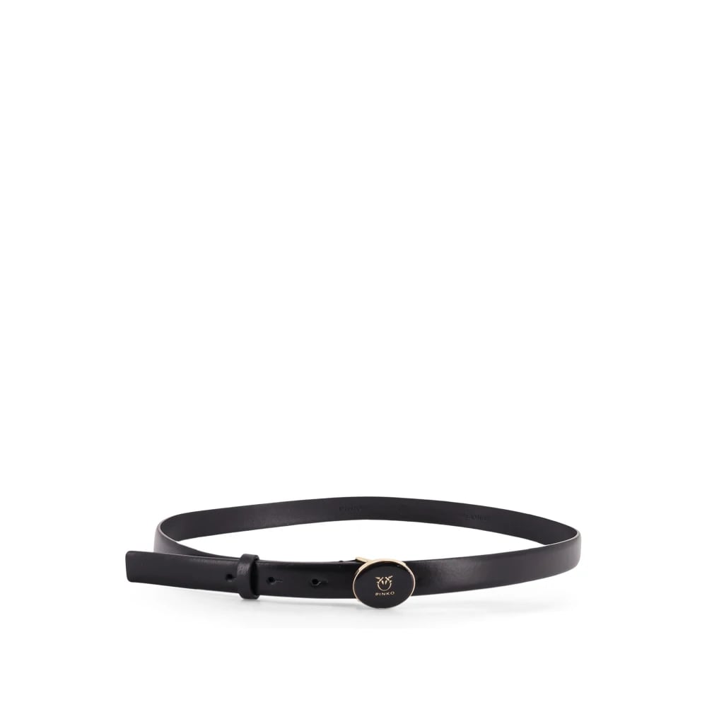 PINKO, Accessories , Dame, Sort, XS, Læder, Bælte med Love Birds Logo