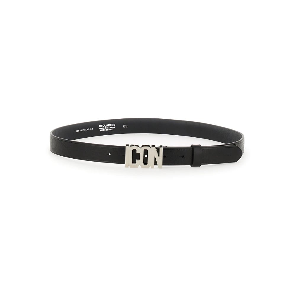 Dsquared2, Accessories , Dame, Sort, 95 CM, Læder, Vacchetta Stampa Icon Bælte