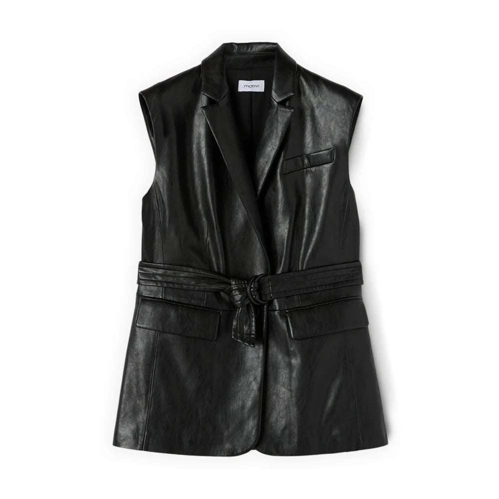 Motivi, Jakker , Dame, Sort, L, Polyester, Vest med bælte og lommer