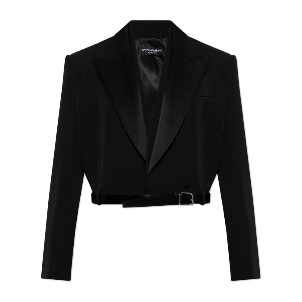 Dolce & Gabbana, Jakker , Dame, Sort, XS, Uld, Kort Blazer med Bælte