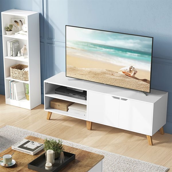TV-bænk 140 cm med opbevaring – passer til TV op til 65 tommer, hvid