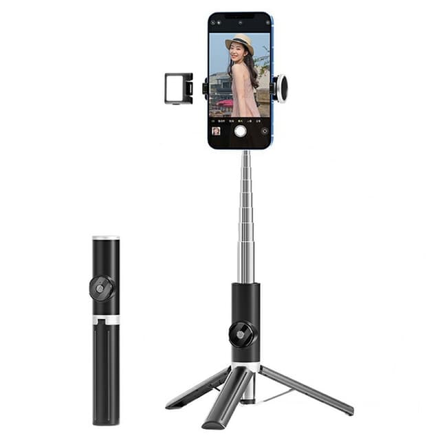 Bluetooth fjernbetjening selfie stick smartphone bærbar forlængelig stativ lampe