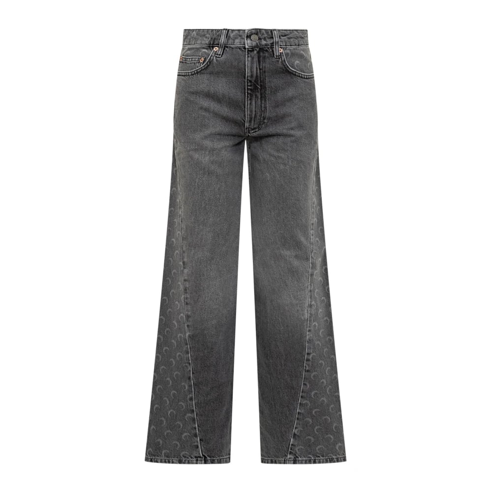 Marine Serre, Jeans , Dame, Grå, XS, Denim, Moon Laser Grey Wash Denim Baggy Jeans