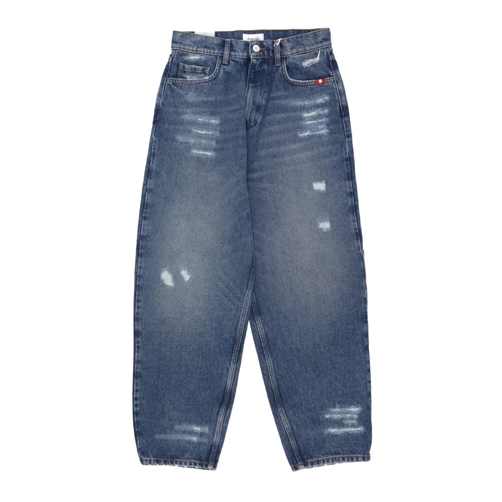 Amish, Jeans , Dame, Blå, W29, Denim, Baggy Denim Jeans med Broderet Logo