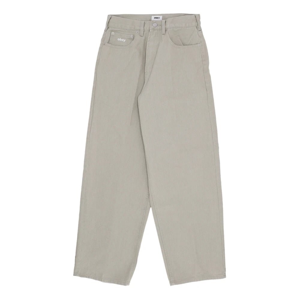 Obey, Jeans , Herre, Grå, W25, Denim, Stenfalmede Baggy Denim Jeans