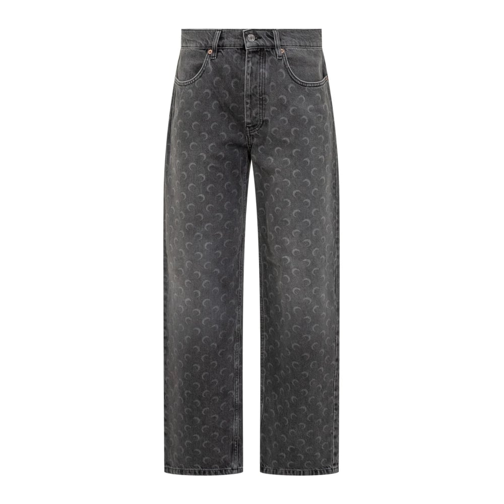 Marine Serre, Jeans , Herre, Grå, XS, Denim, Moon Laser Grey Wash Denim Baggy Jeans