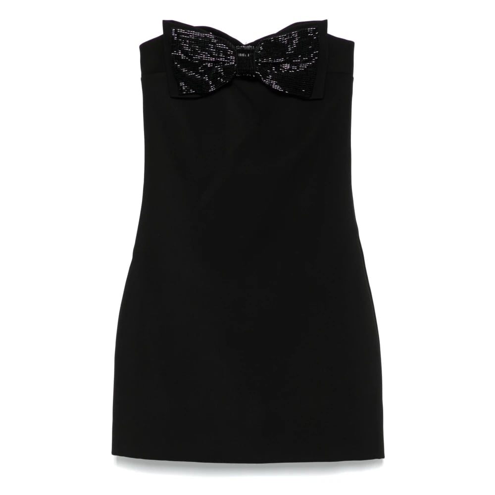 Self Portrait, Kjoler , Dame, Sort, XS, Polyester, Sort Bandeau Kjole med Rhinestone Sløjfe