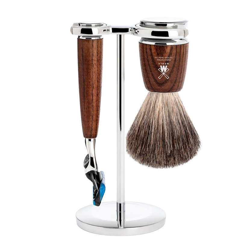 Mühle Barbersæt: Fusion Skaber, Pure Badger Barberkost og Holder, Rytmo, Ask (1 sæt)