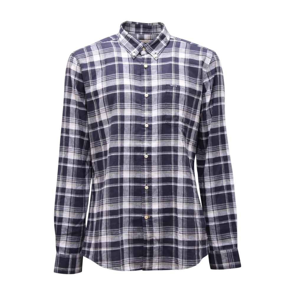 Barbour, Skjorter , Herre, Blå, 2XL, Bomuld, Nelson Skræddersyet Bomuld-Linned Skjorte