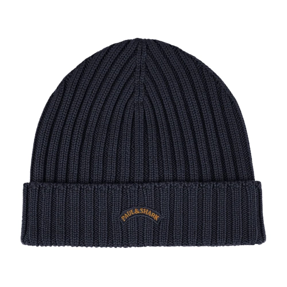 Paul & Shark, Accessories , Herre, Blå, ONE SIZE, Uld, Uld Beanie med Måne Badge