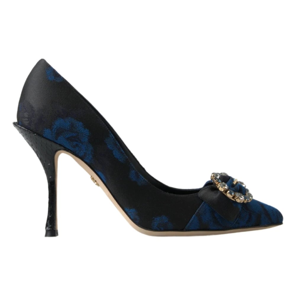Dolce & Gabbana, Sko , Dame, Blå, 36 EU, Læder, Blå Blomst Krystal Hæle Pumps