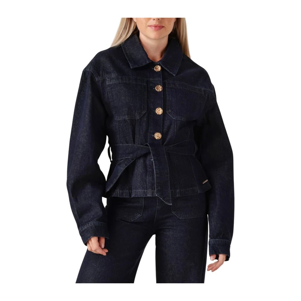 Patrizia Pepe, Jakker , Dame, Lyserød, M, Satin, Blå Blazer med Satin Accents