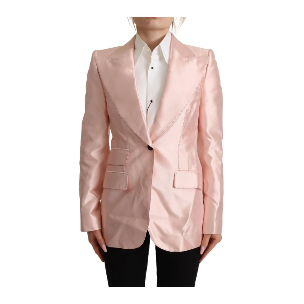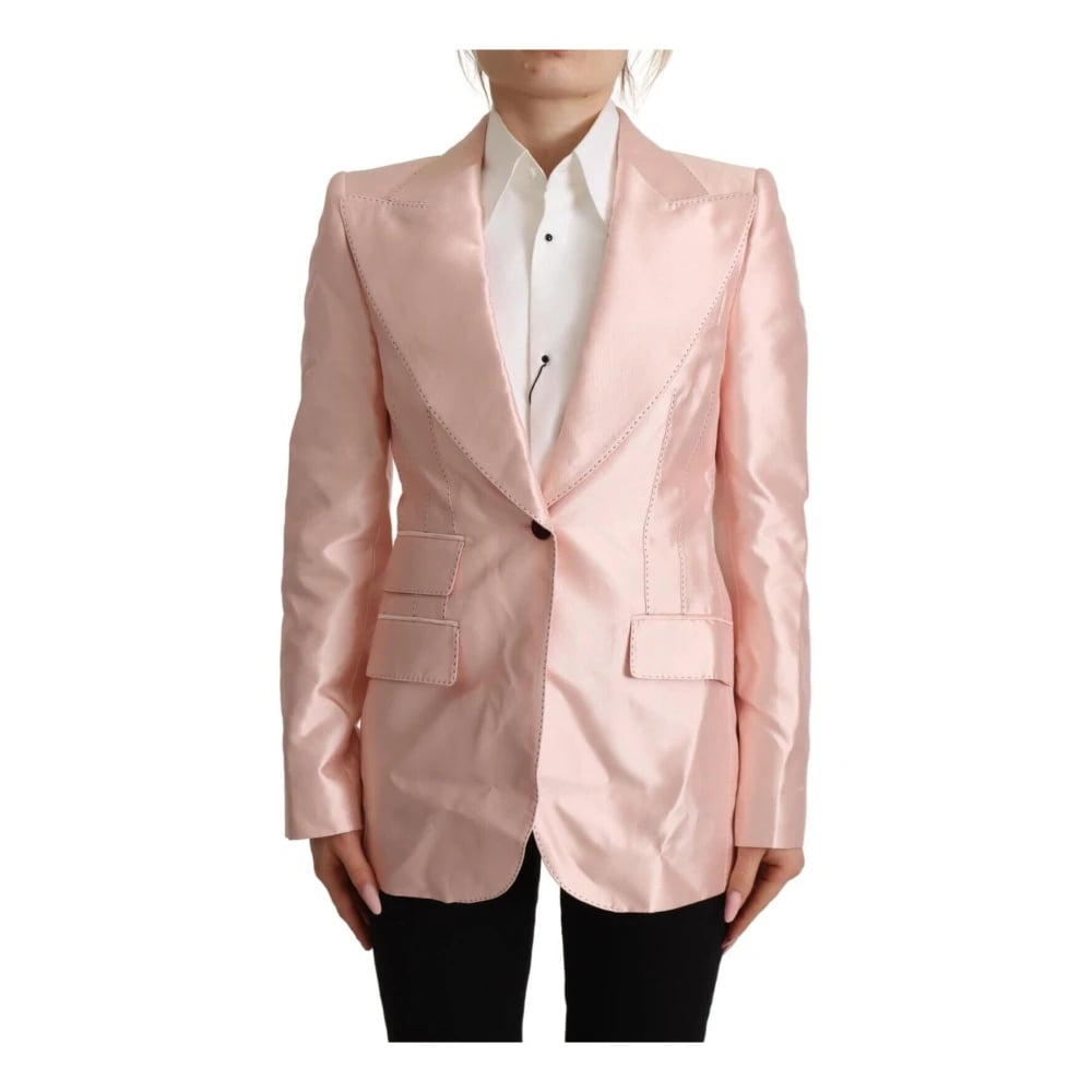 Dolce & Gabbana, Jakker , Dame, Lyserød, 3XS, Satin, Elegant lyserød silke blazer jakke