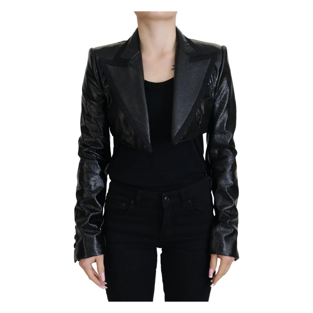 Dolce & Gabbana, Jakker , Dame, Sort, XS, Bomuld, Sort Crop Blazer Jakke