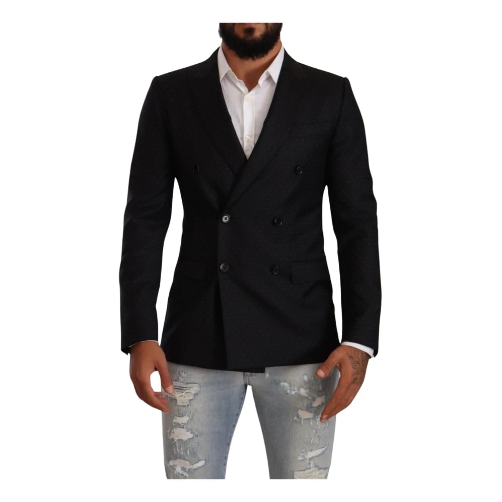 Dolce & Gabbana, Jakker , Herre, Sort, S, Uld, Sort prikket mønster blazer jakke