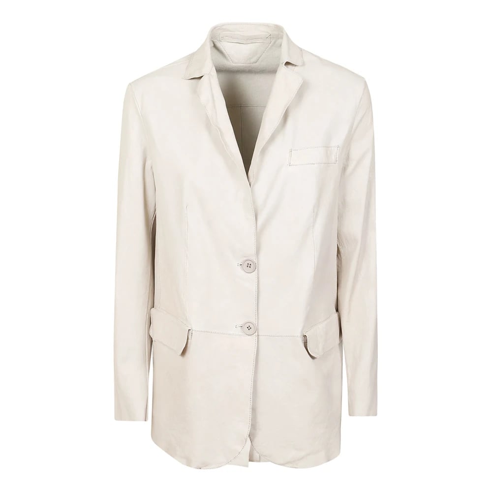 Salvatore Santoro, Jakker , Dame, Beige, 2XS, Læder, Læder blazer jakke kalkfarve