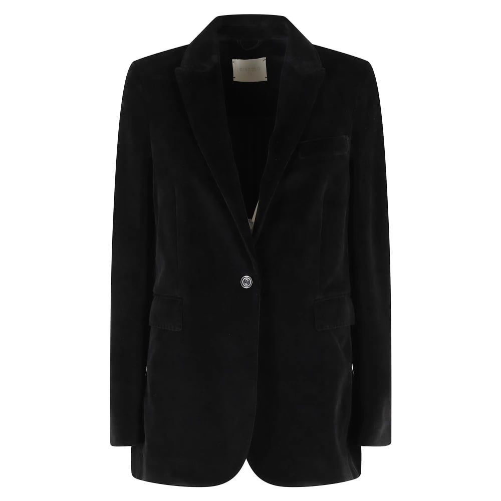 Circolo 1901, Jakker , Dame, Sort, M, Velvet Blazer Sort Chenille Jakke
