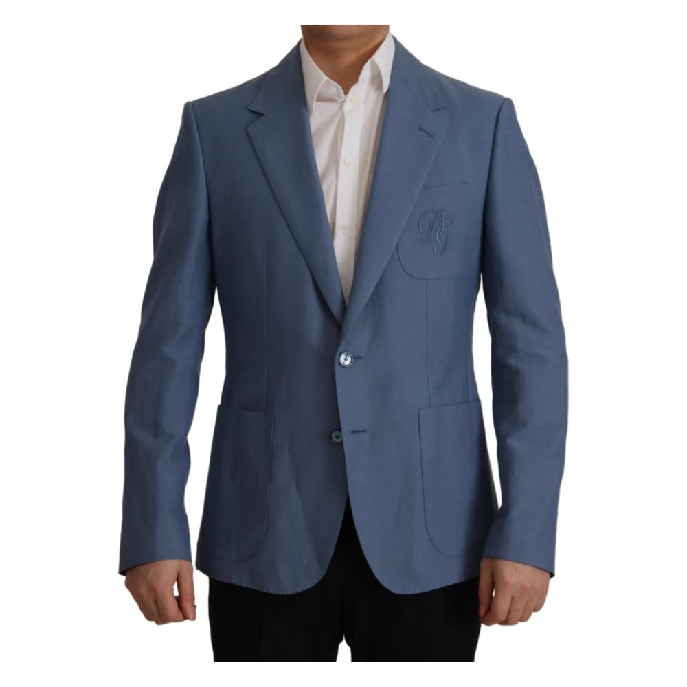 Dolce & Gabbana, Jakker , Herre, Blå, M, Bomuld, Blå Logo Blazer Jakke