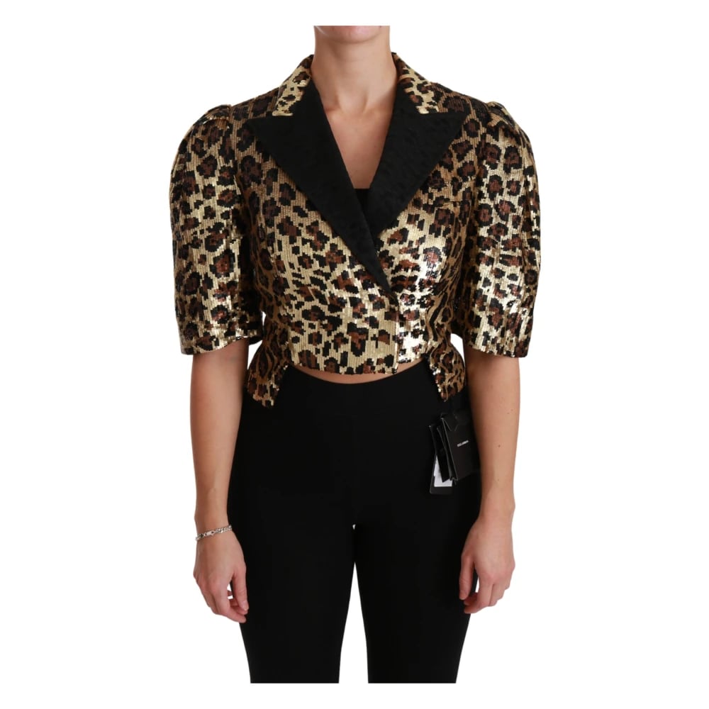 Dolce & Gabbana, Jakker , Dame, Gul, S, Uld, Luksus Leopard Print Kortærmet Blazer Jakke