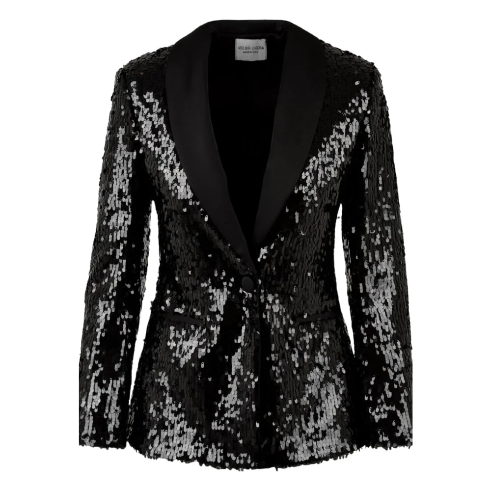 ATELIER LEGORA, Jakker , Dame, Sort, S, Uld, Paillet Sort Blazer Jakke