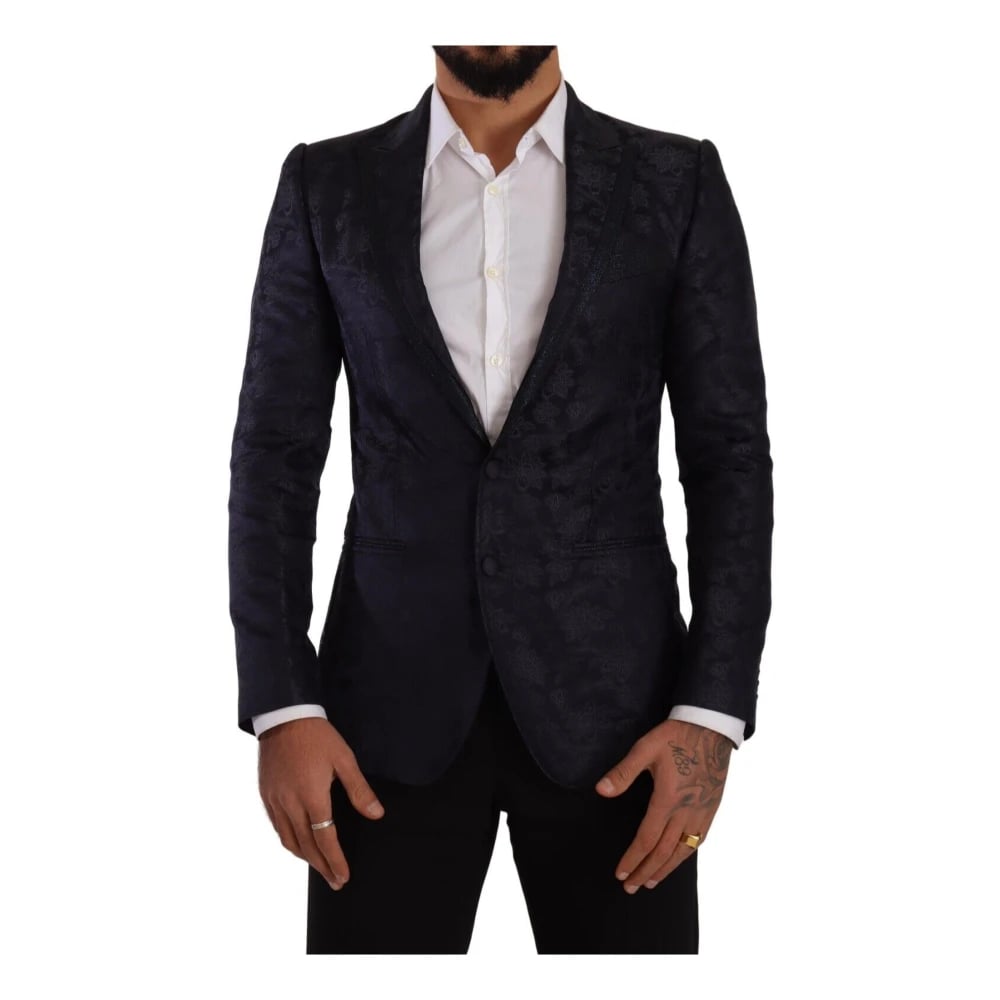 Dolce & Gabbana, Jakker , Herre, Blå, XS, Uld, Silkeblanding Jacquard Blazer Jakke