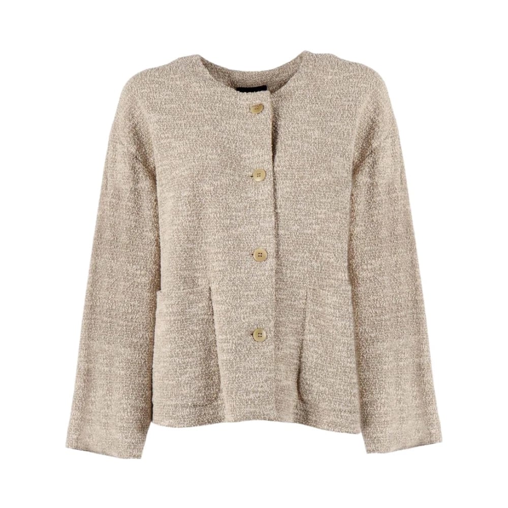 Emporio Armani, Strik , Dame, Beige, 2XS, Bomuld, Cotton Blend Blazer Jakke