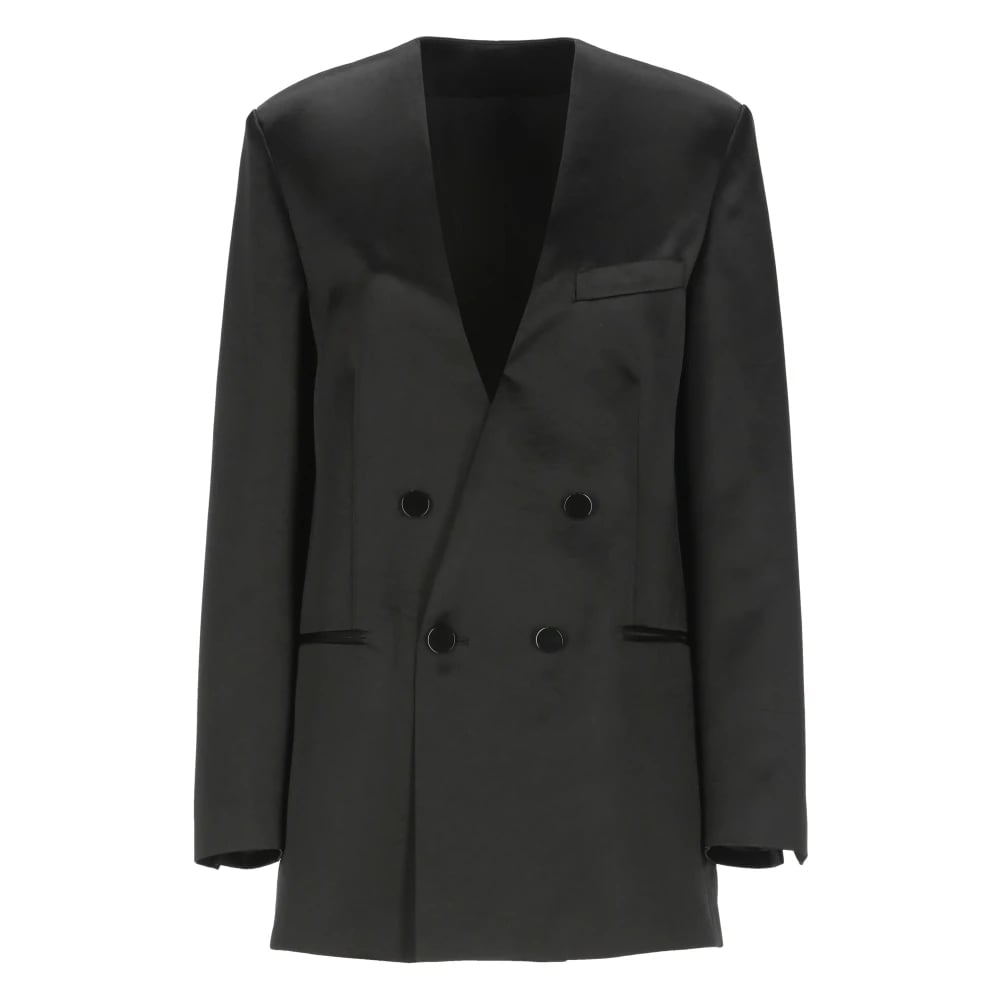 Philosophy di Lorenzo Serafini, Jakker , Dame, Sort, 2XS, Satin, Satin Blazer V-Neck Jakke