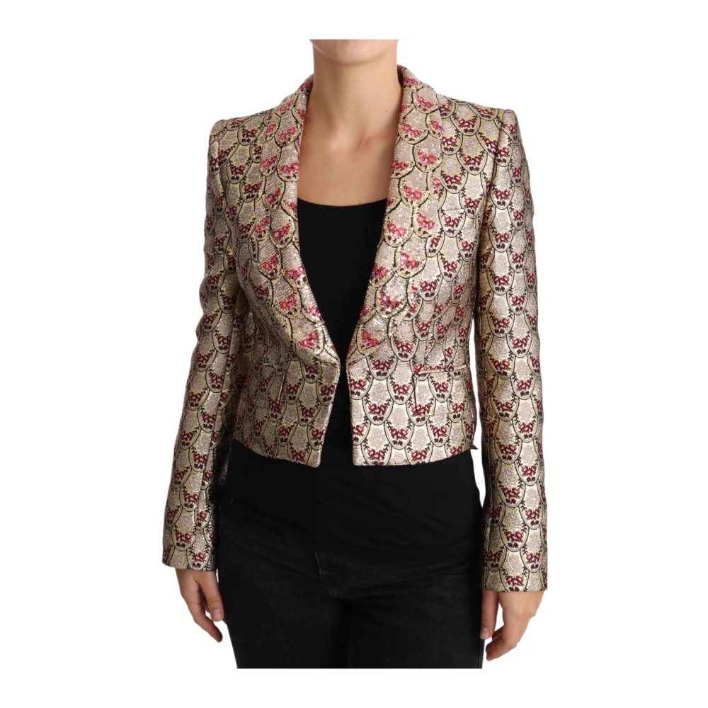 Dolce & Gabbana, Jakker , Dame, Flerfarvet, 2XS, Pink Gold Jacquard Blazer Jakke